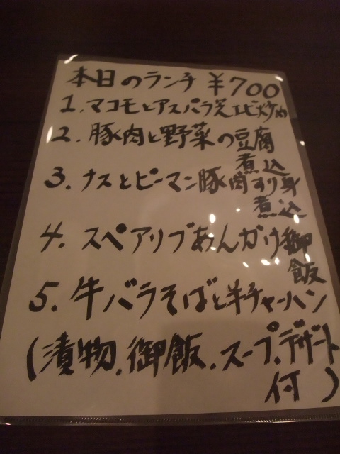 ランチメニューは5種類ありました。