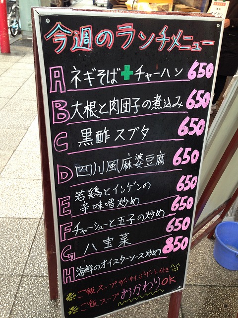 ランチメニュー(¥650)
