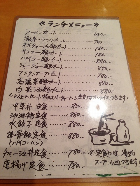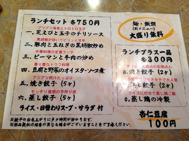 麺・飯類の大盛り無料。