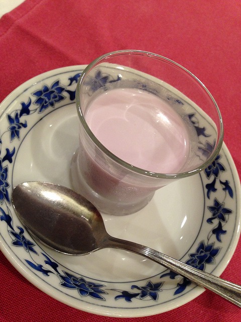 紫芋の杏仁豆腐だって~![]()