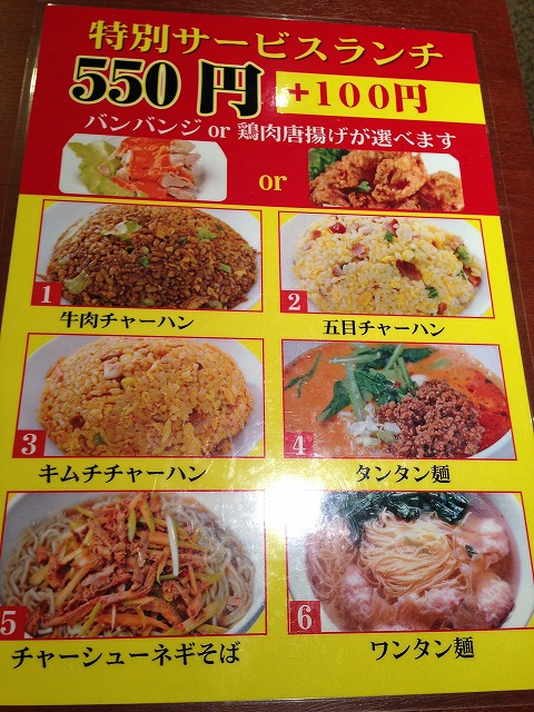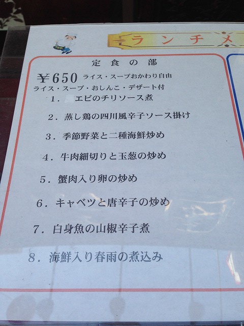 ランチメニュー(¥650)