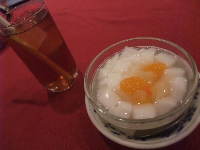 食後のアイスウーロン茶+杏仁豆腐