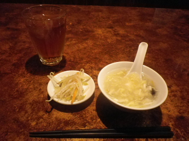 席へ着くと、すぐにウーロン茶、スープ、